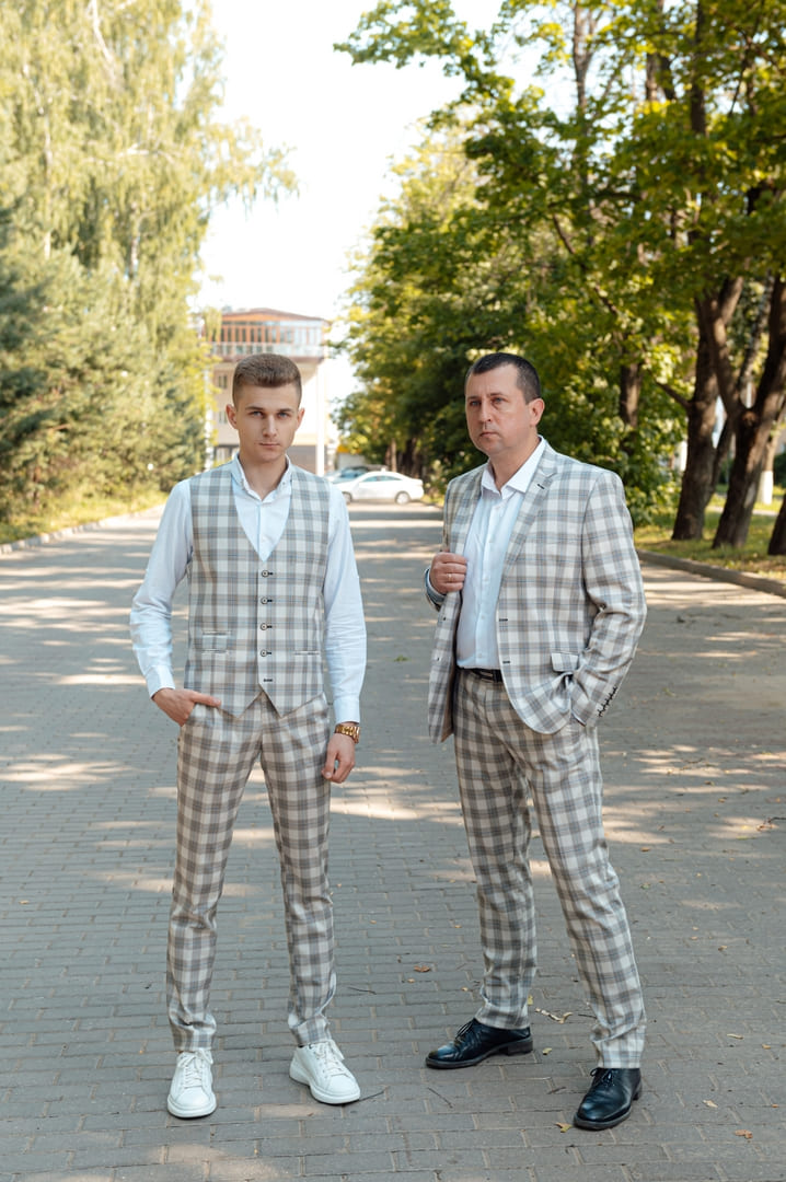 А также у нас можно купить отдельно только мужской пиджак и брюки (как классические брюки, так и без стрелок - чиносы).